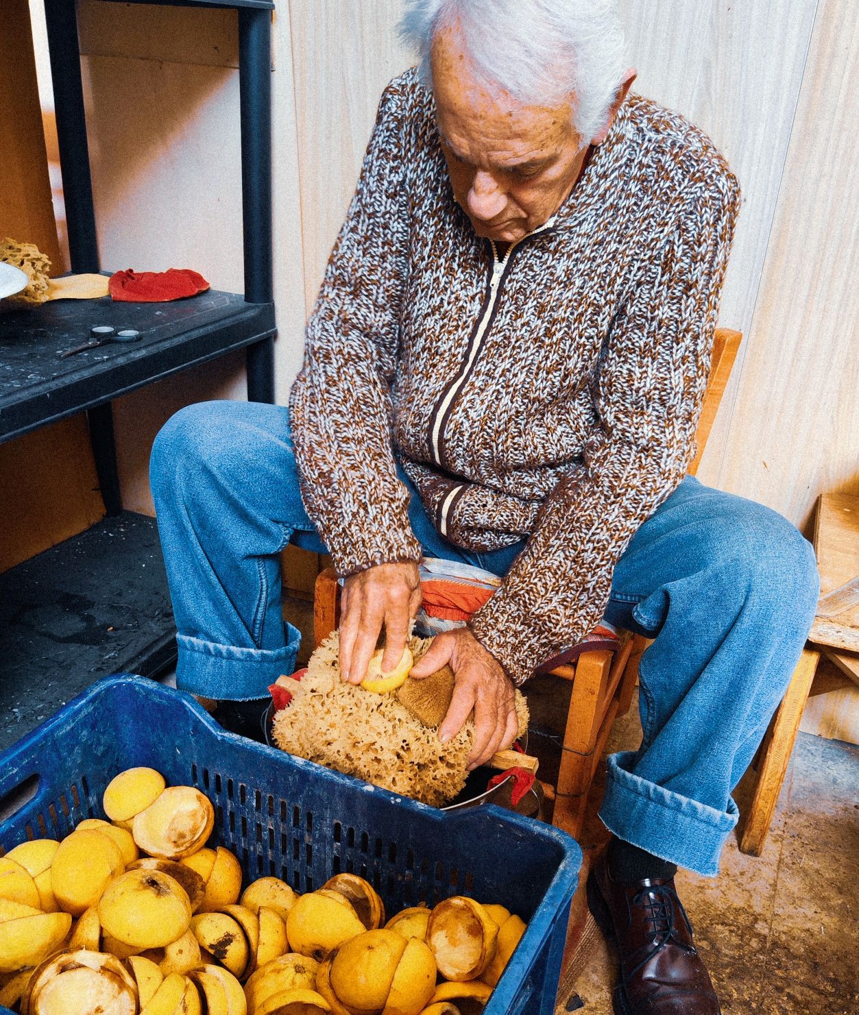Speaking with Vincenzo feels like leafing through the yellowed pages of a forgotten book—one that holds family memories, oral traditions, and vanished trades. His voice recalls the days when Reggio Calabria, between the 1940s and the 1970s, was filled with dozens of spiritari: men who, with patience and precision, extracted bergamot essence using nothing but their hands and natural sea sponges.